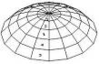 уть меридионально-кольцевой системы разрезки заключается в членении поверхности вращения меридиональными и параллельными плоскостями на треугольные (у полюса) и трапециевидные элементы (рис. 1).Рис. 1. Меридионально-кольцевая разрезка (а) и разрезка сферы двумя пучками меридиональных плоскостей с взаимно перпендикулярными осями (б)