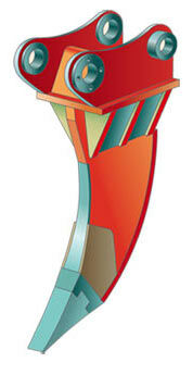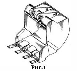 По сути, за последнее 30 лет, ковш не претерпел существенных конструктивных изменений. Некоторая эволюция прослеживается в изменении зуба ковша и способах его крепления. Если в самом начале в основном использовались вставные зубья, которые крепились в гнезда режущей кромки, зачастую выполненных как единая литая деталь, что существенно удорожало и утяжеляло ковш, (рис.1) то на сегодняшний день наибольшее распространение получили вильчатые зубья с болтовым креплением к режущей кромке для ковшей объемом до 0,3м3 и для экскаваторов второй размерной группы (рис.2). А также коронки, надевающиеся на адаптер, приваренный к ковшу и фиксирующиеся специальным штифтом (рис.3). Такая конструкция позволяет снизить металлоемкость и, соответственно, стоимость основного расходного элемента ковша.