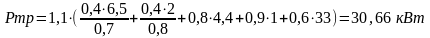 -сумма номинальных мощностей всех установленных в сети электромоторов, кВт;