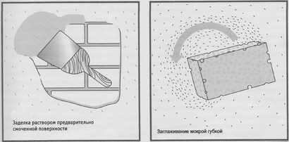 Трещины штукатурки следует расчищать на полную глубину, промывать водой, после чего заполнить раствором с тщательной затиркой. Фактура новой штукатурки должна соответствовать фактуре старой. Свежеоштукатуренные поверхности следует предохранять от чрезмерно быстрой сушки, ударов, сотрясений, загрязнений и намокания.