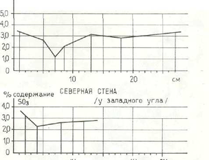 Одним из наиболее активных разрушающих агентов при увлажнении кладки являются минеральные соли. Источники засоления кладки весьма многообразны. Соли могут находиться в строительных материалах здания, поступать в результате подсоса минерализованных грунтовых вод; из атмосферы часто заносятся сернистые соединения от дыма и копоти котельных. Источником засоления являются также материалы, используемые в реставрации и при ремонтах: известь, камень, цемент, антисептики. Суть разрушения солями заключается в том, что вследствие капиллярного движения влаги создается приток минерализованной воды из толщи камня к поверхности кладки. В результате испарения воды происходит обогащение поверхностных слоев камня солями и при их кристаллизации начинается разрушение кладки. Особенно интенсивное разрушение возникает в местах, не подверженных естественному промыванию дождевой водой или систематически не очищаемых. На процесс разрушения сильное влияние может оказывать состав солей. Сульфаты натрия или магния, например, связывают при кристаллизации значительное количество воды в кристаллогидрат. Образующиеся при этом кристаллы большой величины способствуют превращению поверхностных слоев камня в мучнистую осыпь, а при наличии настенной живописи вызывает отрыв и разрушения левкасного слоя с фреской. При этом следует учитывать, что основная борьба с выходом солей к поверхности кладки — это устойчивое и постепенное снижение влажности кладки. Чем быстрее влага испаряется с поверхности камня, тем скорее он будет разрушаться, тем глубже пойдет процесс разрушения, конечно при прочих равных условиях —засолении камня, степени влажности и температуры. Следовательно, повышенная вентиляция памятника снаружи и внутри может способствовать более быстрому разрушению белого камня или кирпича, насыщенного сернокислыми солями. Это, на первый взгляд, парадоксальное положение подтверждается исследованиями лаборатории ВПНРК, проводившимися в основном на Дмитриевском соборе во Владимире в 1969—1971 гг.