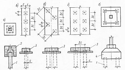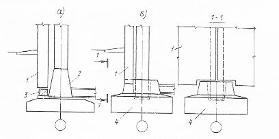 б — конструкция фундамента стаканного типа