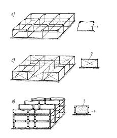 поперечно-стеновые, продольно-стеновые, перекрестно-стеновые, коробчатые (оболочковые).