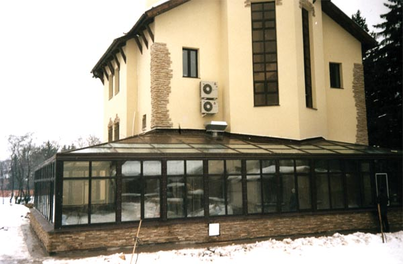 В отличие от стен, для создания которых применяются стандартные одно- и двухкамерные стеклопакеты, для сооружения крыши сегодня используются 2 материала: стеклопакеты с “безопасным” стеклом из поликарбоната и закаленное. Стекло из поликарбоната способно выдерживать удар небольших предметов (веток, камня, кусочков льда). Но минусы этого материала - в том, что он “играет” (может сокращаться в зависимости от температуры на улице), а стоит дороже аналогичных стекол. Самый оптимальный материал - это закаленное стекло. Даже если упавший на крышу предмет окажется тяжелым, то стекло даст трещину, но не осыплется.