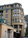 Жилой дом расположен в глубине улице имеет спокойный силуэт и не портит панораму.