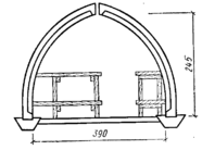 Элементы входной части в виде плоских сплошных плит изготовляют также в оснастке пустотельных панелей. Несущая способность остова убежища достигает 0,3 МПа и более. На основе применения указанной конструкции разработаны типовые проекты быстровозводимых убежищ. В городах и промышленных предприятиях могут найти применение быстровозводимые убежища из лесоматериалов (рисунок 10).