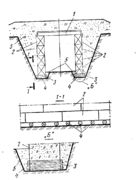 Часто под такие стены предусматривают специальные фундаментные подушки. В ещё более неблагоприятной ситуации находятся убежища в виде замкнутых железобетонных рам. Можно считать, что в перечисленных выше случаях, учитывая сравнительно небольшие пролёты сооружений (до 3 м), элементы покрытия убежищ находятся на практически несмещаемых опорах. Чтобы исключить это негативное явление, предлагается следующее конструктивное решение фундаментной части. Между подошвой отдельных стен или сплошным днищем и основанием устанавливают с интервалом и равномерно друг от друга поперечные деревянные подкладки. Опорная площадь подкладок, опирающихся на грунт, должна составлять 0,05 – 0,15 площади покрытия. Во избежание проваливания грунта между подкладками в процессе производства работ и в последующее время рекомендуется в торцах подкладок предусмотреть ограждающие элементы (из досок). Высота подкладок должна составлять около 15 см (рисунок 13)