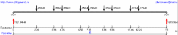 По правилу Винклера, чтобы определить максимальный изгибающий момент, необходимо расположить краны так, чтобы середина балки находилась между колесом крана и равнодействующей R.