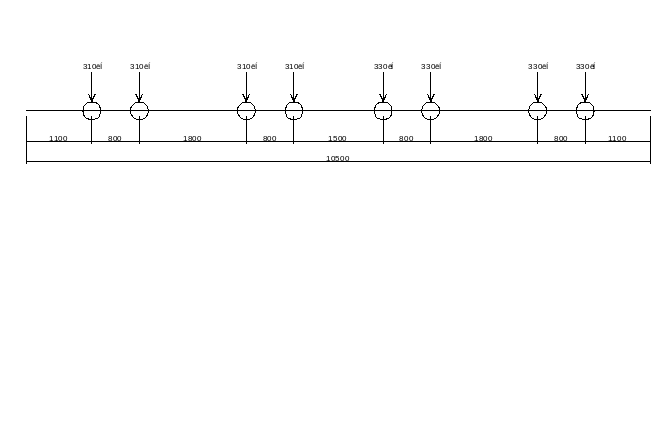 Для определения изгибающих моментов и поперечных сил необходимо определить наивыгоднейшее положение кранов. Определяем положение равнодействующей сил F1,F2,F3,F4 по отношению к колесу крана. Для этого сначала найдем расстояние от т. О до R. Расположим кран следующим образом: