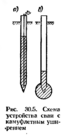 Один из вариантов набивных свай — устройство их с уширенной пятой. Уширение пяты достигается механическими приспособлениями, разбуривающими грунт ниже конца обсадной трубы. Другой способ устройства уширенной пяты — использование энергии взрыва. Заряд взрывчатого вещества с электродетонатором опускают до забоя скважины, нижнюю часть оболочки заполняют литым бетоном (рис. 30.5). При взрыве заряда в грунте под давлением газов образуется шаровидная полость, в которую сползает бетон из оболочки (рис. 30.5,6). В результате на конце сваи образуется уширение, сильно повышающее несущую способность сваи. Уширения, изготовленные при помощи взрыва, называются камуфлетными. Камуфлетные уширенные пяты могут быть образованы у железобетонных и у стальных трубчатых свайных оболочек.