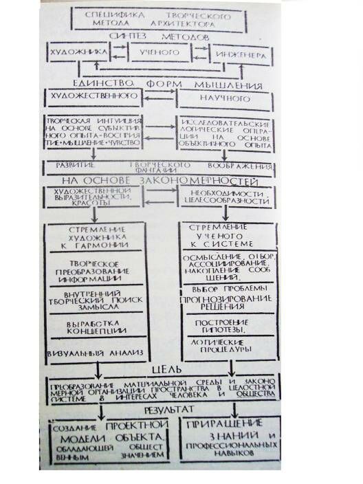 Двойственность природы архитектуры как синтеза материального и духовного достигается на основе интеграции креативных и рациональных методов архитектурно-проектной деятельности с использованием научных принципов познания и отражения реальной действительности.