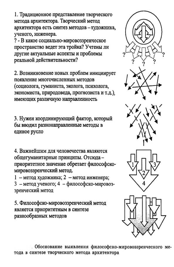 творческий метод архитектора как синтез методов, детерминируемых проблемами реальной действительности; философско-мировоззренческого, художника, инженера, ученого и т.д.