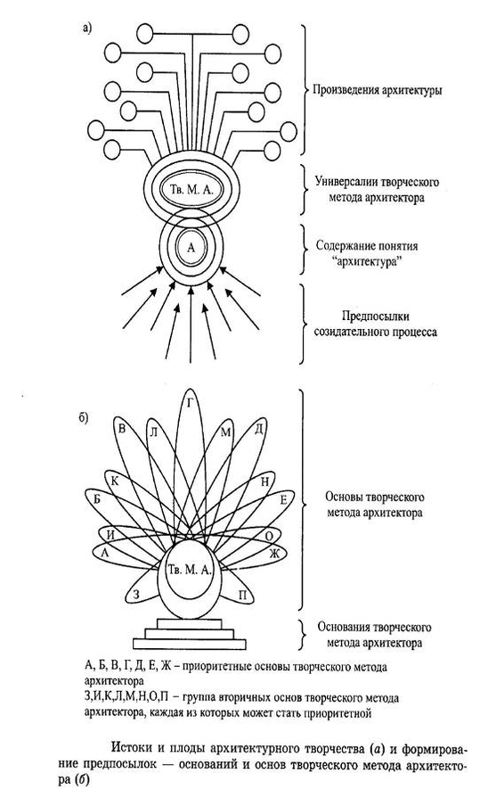 Теоретической основой творческого метода архитектора можно считать базис научного, мировоззренческого, практического опыта многих поколений зодчих, воплощений в значительных объектах архитектурного и градостроительного творчества.