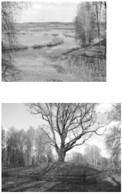 В Тригорское из Михайловского ведет знакомая поэту "дорога, изрытая дождями", и уже отсюда, с опушки леса, открывается вид на три горы. Виден дом, украшенный портиками и колоннами, и парк на трех знаменитых холмах ... Это - усадьба михайловских соседей и друзей Пушкиных - Осиповых и Вульфов. Сюда, в Тригорское, юного Пушкина влекло уже с первого знакомства в памятное лето 1817 года: