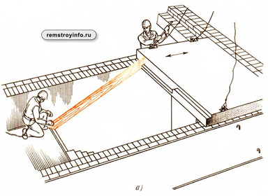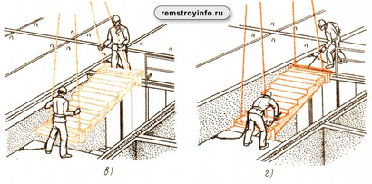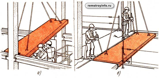 Рис. 5 - Укладка связевой (распорной) (а) и рядовой (б) плит перекрытия