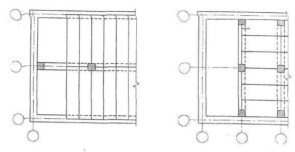 | С ПРОДОЛЬНЫМ РАСПОЛОЖЕНИЕМ РИГЕЛЕЙ | С ПОПЕРЕЧНЫМ РАСПОЛОЖЕНИЕМ РИГЕЛЕЙ |