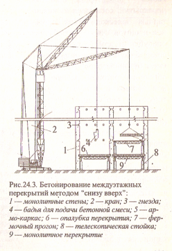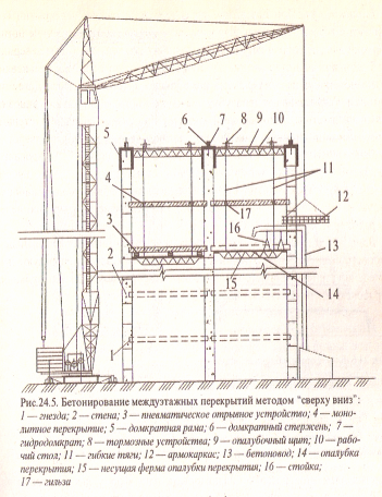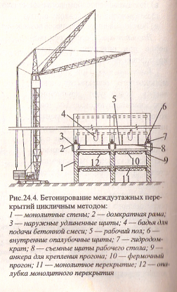 в) поэтажным способом, когда совмещают бетонирование стен и перекрытий; г) бетонированием «сверху вниз»;