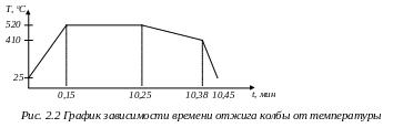 На основании этих данных построим график зависимости времени отжига колбы от температуры (рис. 2.2)