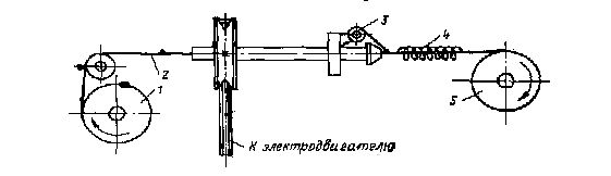 Навивка спиралей осуществляется на специальных спирализационных машинах. Рассмотрим навивку спиралей на машинах с непрерывным керном (рис.3.6). Вокруг керна из стальной или молибденовой проволоки 2 перематываемой с одной катушки 1 на другую 5, вращается шпуля 3 с вольфрамовой нитью. При равномерном поступательном движении керна и равномерном вращении вокруг него шпули вольфрамовая нить навивается в спираль 4 с определённым шагом, который зависит от отношения скорости перемещения керна и частоты вращения шпули.