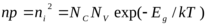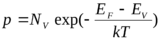 где NV - эффективная плотность состояний в валентой зоне. Мы знаем, что концентрации электроной и дырок одинаковы, т.е. n=p=ni , кроме того,