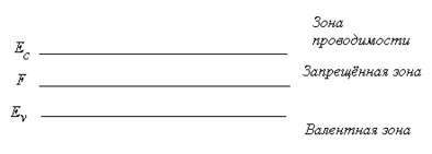 Символом Ev обозначают верхнюю границу последней заполненной зоны, потолок валентной зоны, а символом Ec – нижнюю границу первой пустой зоны, дно зоны проводимости. Символом Eg = Ec - Ev обозначается ширина запрещённой зоны.