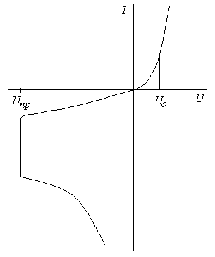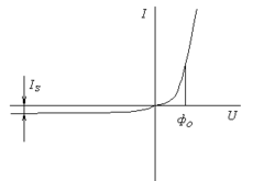 Is – некоторая постоянная, имеющая размерность тока, определяется свойствами материала п- и р-типа электропроводности. Кривая, соответствующая этой формуле, представлена на рис.: