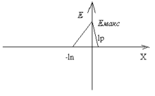 Ясно, что электрическое поле нарастает, причём растёт оно по прямой, так как плотность заряда постоянная, дорастает до Емакс , а затем падает до нуля, так как далее заряд имеет другой знак.