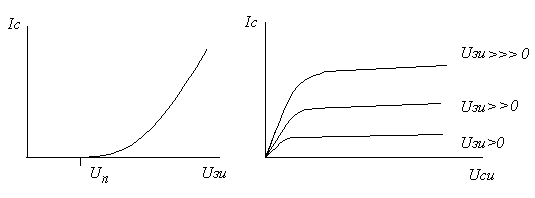 тока стока от напряжения сток-исток представлена на правом рис. Эти кривые очень похожи на выходные характеристики полевого транзистора с р-п переходом, но только здесь знак тока стока и напряжения на стоке совпадают.