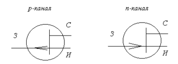Крутизна измеряется в мA/В, и составляет обычно от 1 до 100. Входное сопротивление – 109...1012 Ом. На схемах полевые транзисторы изображаются так: