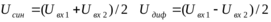 Если сигналы Uвх1 и Uвх2 произвольные, то можно вычислить синфазную и дифференциальную составляющие по формулам: