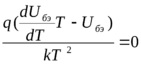 Мы написали это выражение в таком виде, чтобы точно увидеть, как оно зависит от температуры. Но при этом мы будем считать, что при изменении температуры одновременно изменяется и входной сигнал, так, чтобы на выходе всё оставалось постоянным. Итак, мы считаем, что Uвых, Еп, R и I0 остаются постоянными (последнее, правда, немного меняется, но гораздо меньше, чем члены в экспоненте). Поэтому можно полагать, что меняются только Uбэ и Т – напряжение база-эмиттер и абсолютная температура. (q и k – мировые константы – заряд одного электрона и постоянная Больцмана.) Продифференцируем по Т и приравняем нулю.