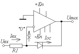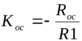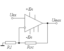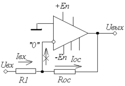 Итак, мы получили коэффициент усиления с инверсией, что естественно, но на единицу меньше, чем у неинвертирующего усилителя на ОУ. Если Roc=R1, то Кос= -1, то-есть у нас получился инвертор.
