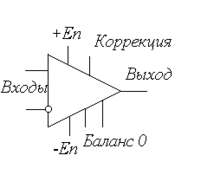 Обозначаются операционные усилители так же, как и обычные усилители – треугольником, но у ОУ два входа, и один с инверсией: