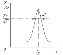 а сопротивление на этой частоте равно бесконечности, практически определяется потерями контура. При отступлении от резонансной частоты сопротивление контура резко падает, и, следовательно, падает коэффициент усиления транзистора, см. рис.: