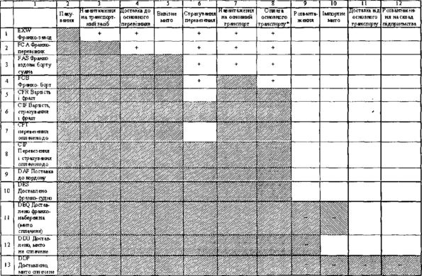 Приблизна схема розрахунку ціни товару залежно від базисних умов поставки така: