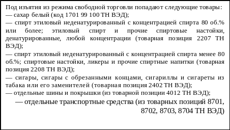 Данные изъятия установлены только при импорте товаров в Республику Беларусь (см. рис. 2).