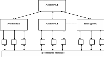 В линейной схеме нет обратной связи. Она хорошо работает в небольших социальных организациях при высоком профессионализме и авторитете руководителя; а также большой заинтересованности подчиненных в успешной работе социальной организации.