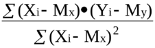 При наличии результатов наблюдений над парами Xi и Yi предварительно вычисляются средние значения My и Mx, а затем производится оценка коэффициента b в виде