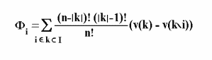 Теорема. Для любой характеристической функции v над I={1,2,...n} компоненты вектора Шепли определяются по формуле