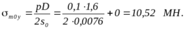 Максимальное мембранное напряжение от основных нагрузок определяется по формуле