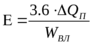 E=3,6*39207/21,793=6477 кДж/кг вл.