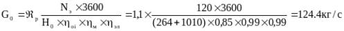N2э=(G0-G1)´(h1-h2)´hм´hэг=(124,4-13,3)´(3073-2894)´0,99´0,99=19,5 МВт