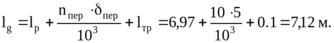 Довжина труб, зайнятих перегорожами і трубними дошками: