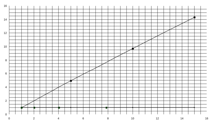 Наклонная линия характеризует 2 наложенных друг на друга графика функций