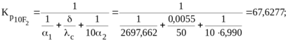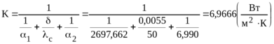 2.1. Определить коэффициент теплопередачи при: