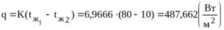 | α1, Вт/(м2К) | α2, Вт/(м2К) | 1/ α1, м2К/Вт | 1/ α2, м2К/Вт | δ/λс, м2К/Вт | R, м2К/Вт | K, Вт/(м2К) | q, Вт/(м2К) |