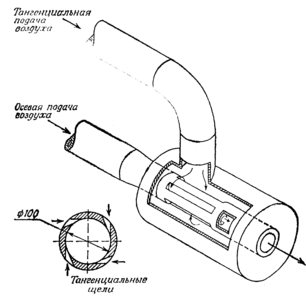Рис.1.4 Закручивающее устройство с осевым и тангенциальным подводом.