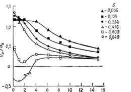 Сразу за ПВЯ в диапазоне r/re=0.43….0.52 (при изменении от 0 до 40) pwr уменьшается сростом r и, следовательно, ПВЯ в этой области нестабильно. В тоже время при изменении от 320 до 0 в диапазоне значений r/re= 0.45…0.55 величина pwr фактически постоянна по радиусу, и поэтому поток в этой области нейтрально устойчив.
