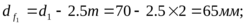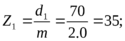 Делительный диаметр d1=50мм; m=2,0 мм; число зубьев