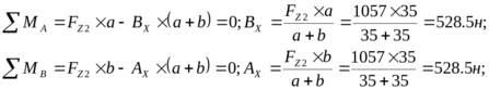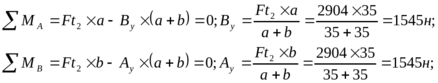 Определяем опорные реакции от силы Ft2